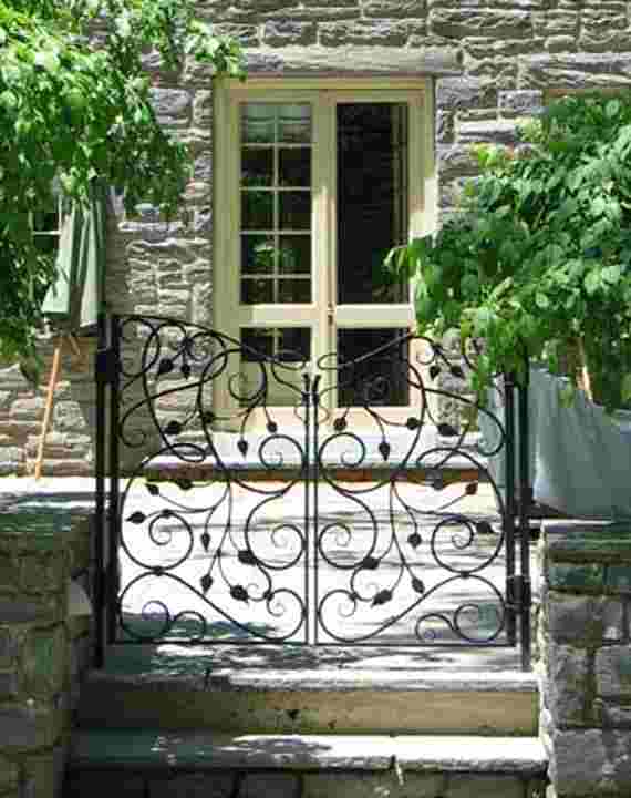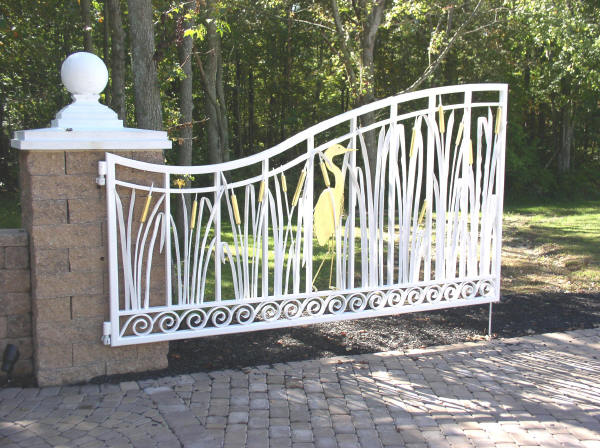 Two residential entry gates. Gloss White w/ gold leaf accents.