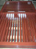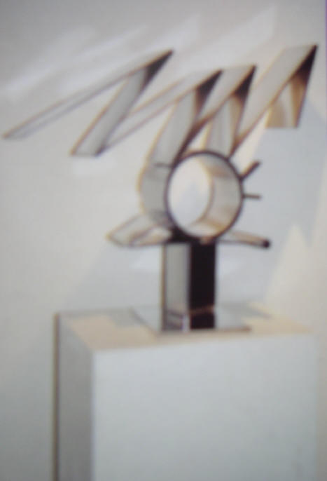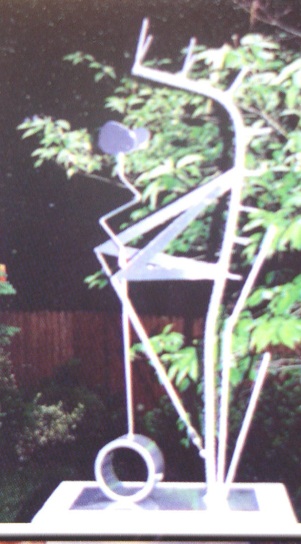 Chrome like powder base coat with clear on metal abstract sculpture.