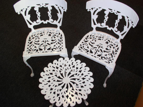 Chrome like powder base coast with clear coat on metal abstract sculpture.