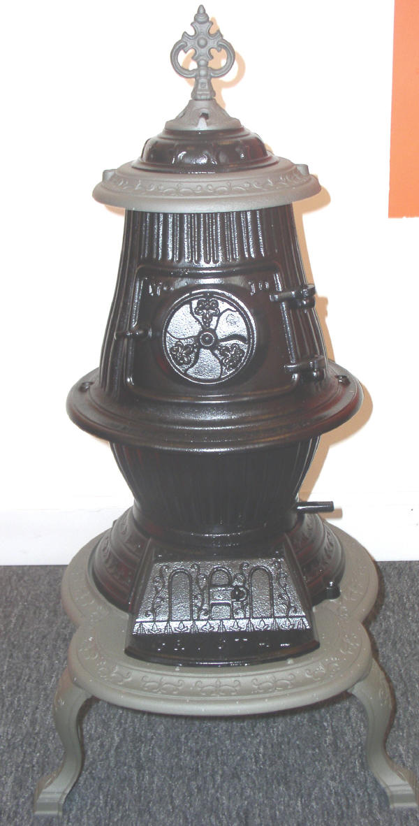 Restored potbelly stove with hi-temp satin black and a stainless gray hi-temp.